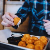 All of our wings are served “dry” with your choice of sauce on the side. You decide how much sauce to toss or dip!